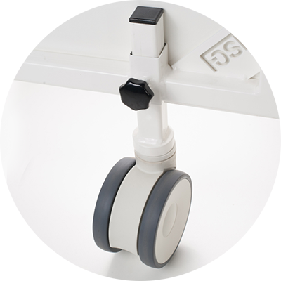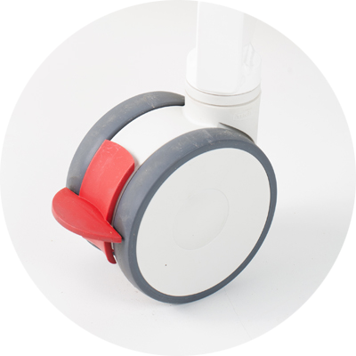 5 Svänghjulen som inte repar säkerställer att speglarna kan flyttas enkelt och utan spår. Två av hjulen är utrustade med en broms för att säkert placera spegeln.